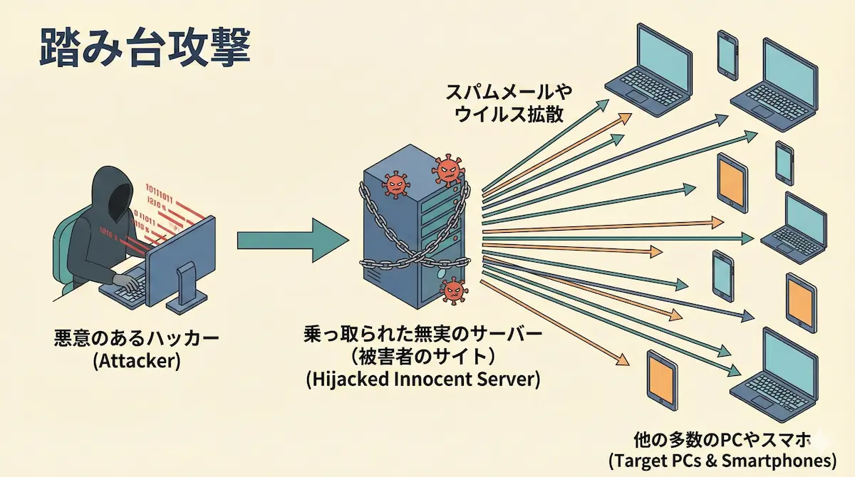 怖いのは、自分のサイトが乗っ取られ、他者への攻撃の「踏み台」にされてしまうケースです。